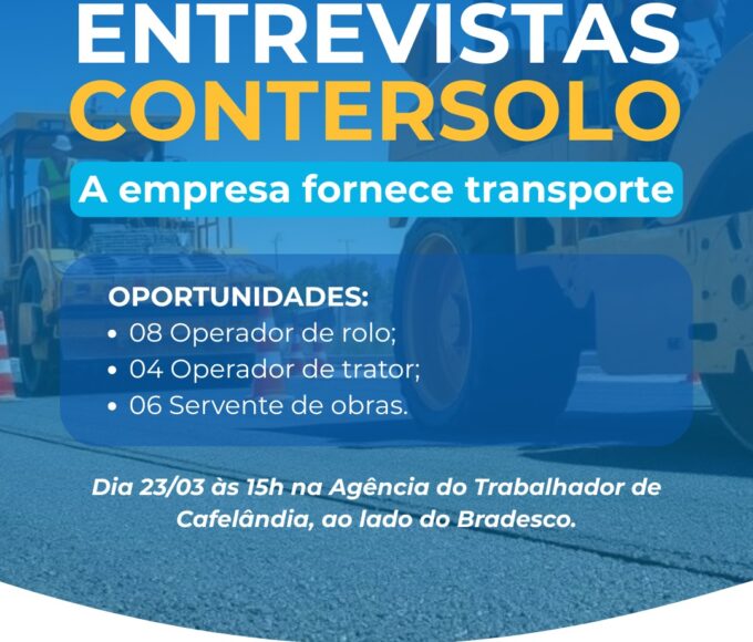 PorVinicius Cardoso23 de março de 2026A empresa Contersolo está contratando para diversas vagas: são 8 vagas para operador de rolo, 4 para operador de trator e 6 para...