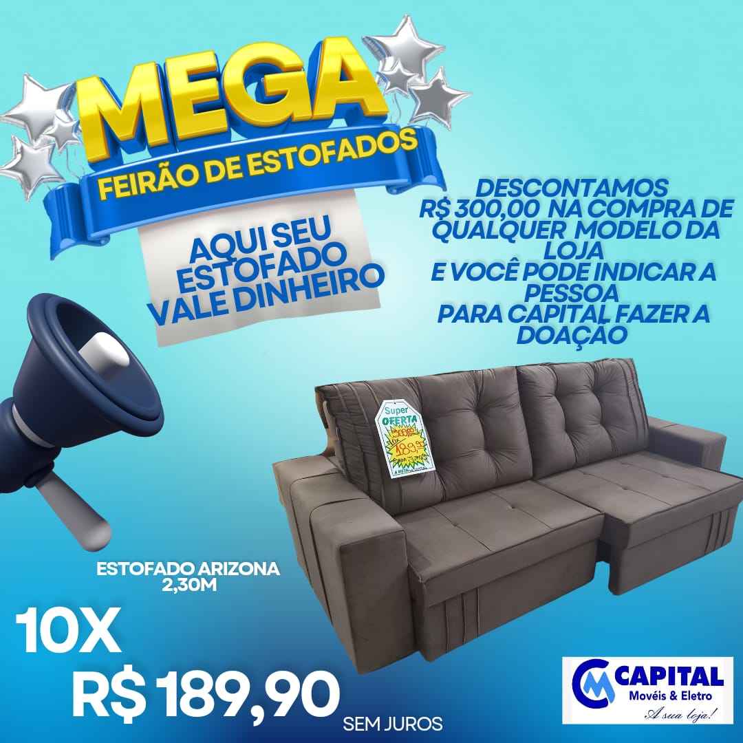 “Nós da Capital Móveis e Eletro ressaltamos que o seu estofado usado tem valor, pegamos o seu estofado pelo preço de R$ 300,00 reais , mediante a sua compra de outro estofado, e o melhor você ainda pode escolher para quem a Capital vai doar o seu usado”.
