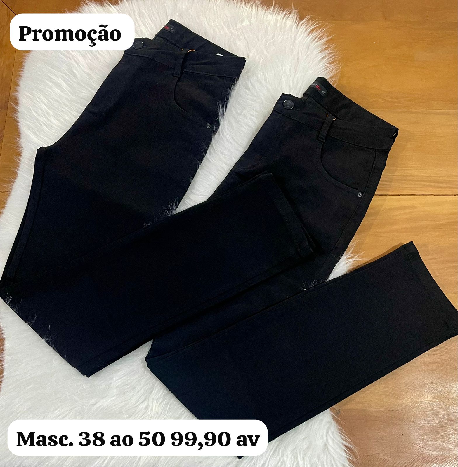 Venha conferir nossas calças masculinas do tamanho 38 ao 50, todas por apenas **R$ 99,90 à vista**! É a chance perfeita para renovar seu guarda-roupa com estilo e economizando.