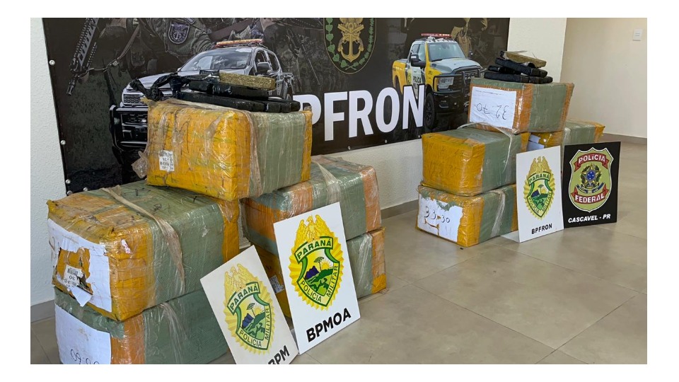 Jovem de 25 anos foi preso e aproximadamente 350kg de maconha foram apreendidos em Cascavel, no Oeste do Paraná, na manhã desta quarta-feira (22). A ação integrada foi realizada pela pelo 6º BPM, BPFron, BPMOA e Polícia Federal.