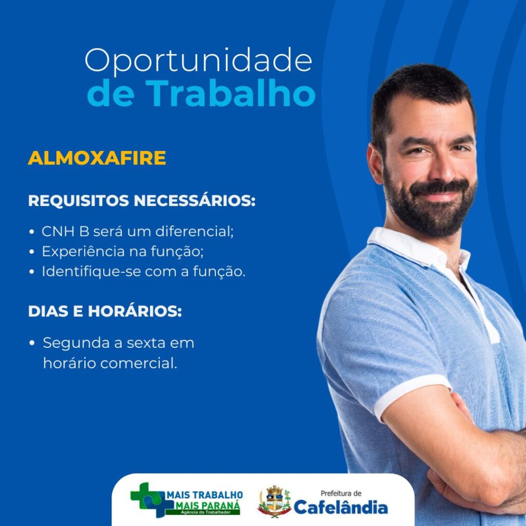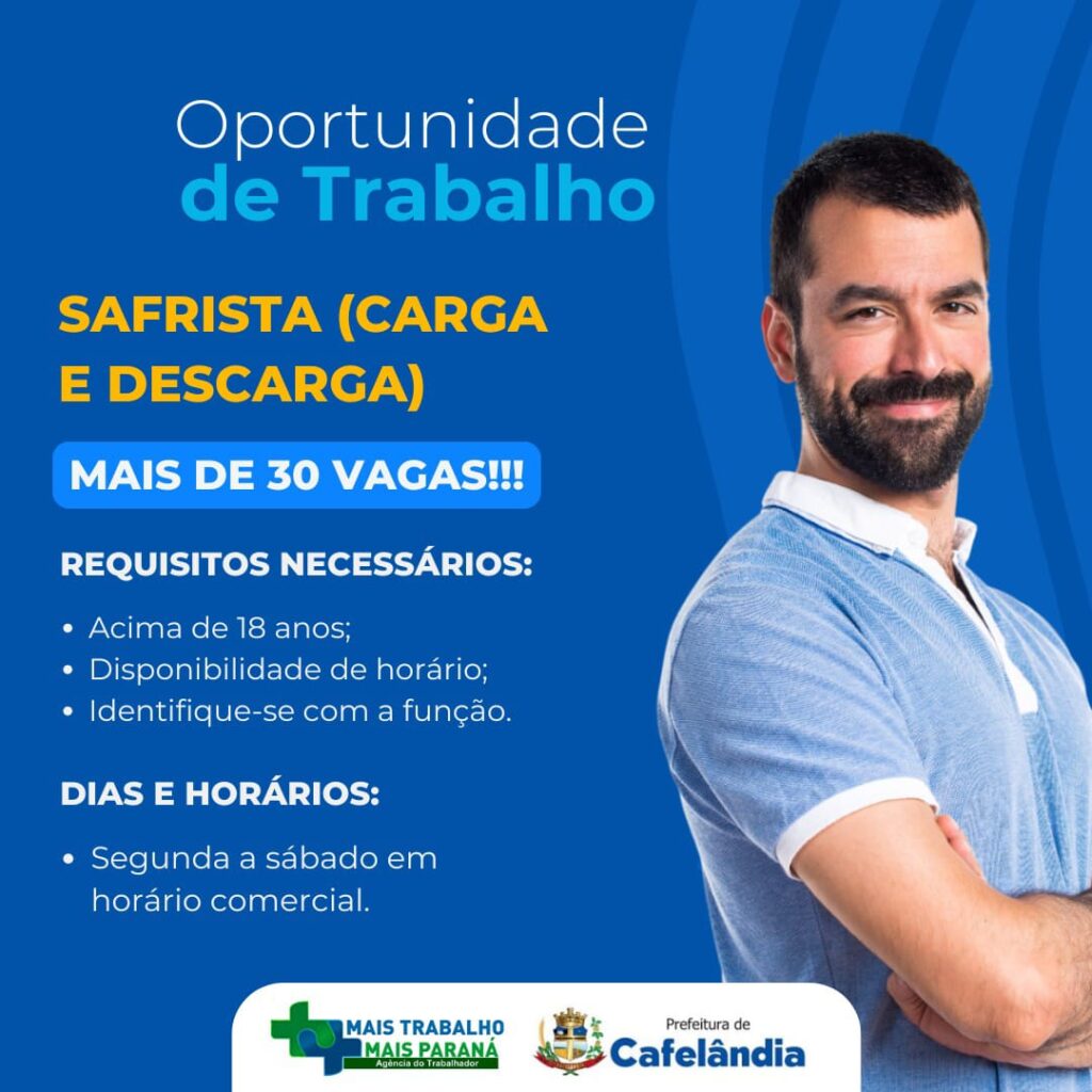 No início da noite desta quinta-feira, dia 3 de julho, Marcos Sampaio, responsável pela Agência do Trabalhador de Cafelândia, entrou em contato com o *Cafelândia Notícias* para compartilhar uma boa notícia: a agência está com diversas vagas abertas para diferentes segmentos.