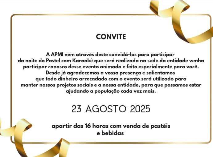 Venham saborear nossos deliciosos pasteis e mostrar o seu talento no Karaokê, esta é uma promoção em prol da APMI.