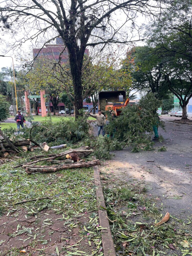 Com agilidade e dedicação, os profissionais iniciaram a remoção de árvores caídas, galhos e lixos espalhados, garantindo segurança e organização em diversos pontos da cidade. A atuação incansável da equipe tem sido fundamental para minimizar os impactos do vendaval e devolver a normalidade ao município.