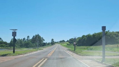 O primeiro radar do trecho está instalado pouco antes da rotatória de acesso a Goioerê, no Parque de Exposições, e só está ativo para quem chega à cidade de Goioerê.