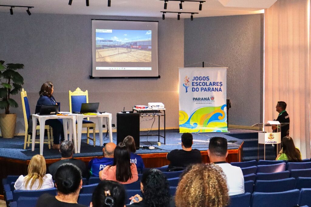 Na tarde de segunda-feira (26), o Auditório da Prefeitura de Cafelândia foi palco da sessão técnica da fase macro regional dos 71º Jogos Escolares do Paraná (JEP’s). O encontro reuniu representantes dos núcleos regionais de Cascavel, Toledo, Foz do Iguaçu e Assis Chateaubriand, que alinharam os últimos detalhes da competição que movimentará o município em junho.