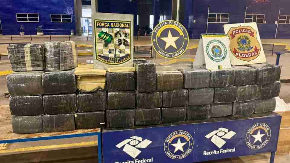 A droga estava em um veículo com placas paraguaias abordado pelos servidores. No banco traseiro e no porta-malas, eles encontraram grande quantidade de pacotes embalados de forma irregular.