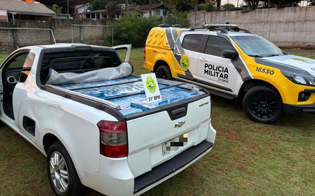 Na madrugada desta sexta-feira (13) a equipe Patrulha Rural da polícia militar, realizou um acompanhamento a um veículo GM/ Montana de cor Branca, placas de Itapoá S/C, com sinais sonoros e luminosos para fazer a abordagem ao veículo.