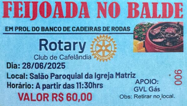 PorVinicius Cardoso26 de junho de 2025O Rotary Clube de Cafelândia convida toda a comunidade para participar da mais nova edição da deliciosa Feijoada no Balde, que será realizada...