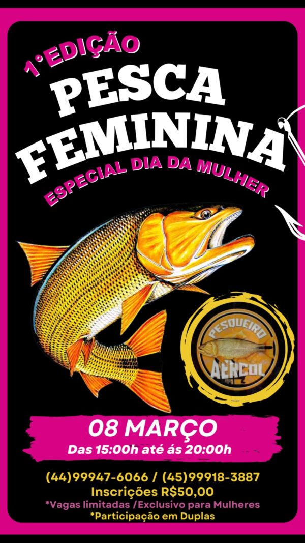 O Pesqueiro Aercol através do Zé Roberto pensando em valorizar a cada mulher, promove a 1ª edição da Pesca Feminina, será no dia...
