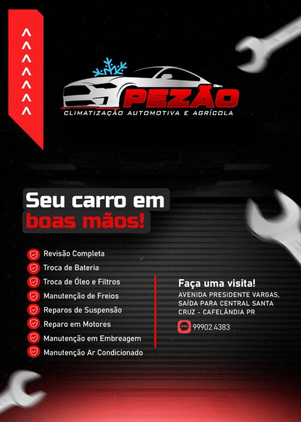 PorVinicius Cardoso20 de dezembro de 2024Neste final de ano pensado na sua segurança e na segurança da sua família a Pezão Climatização Automotiva e Agrícola esta com atendimento...