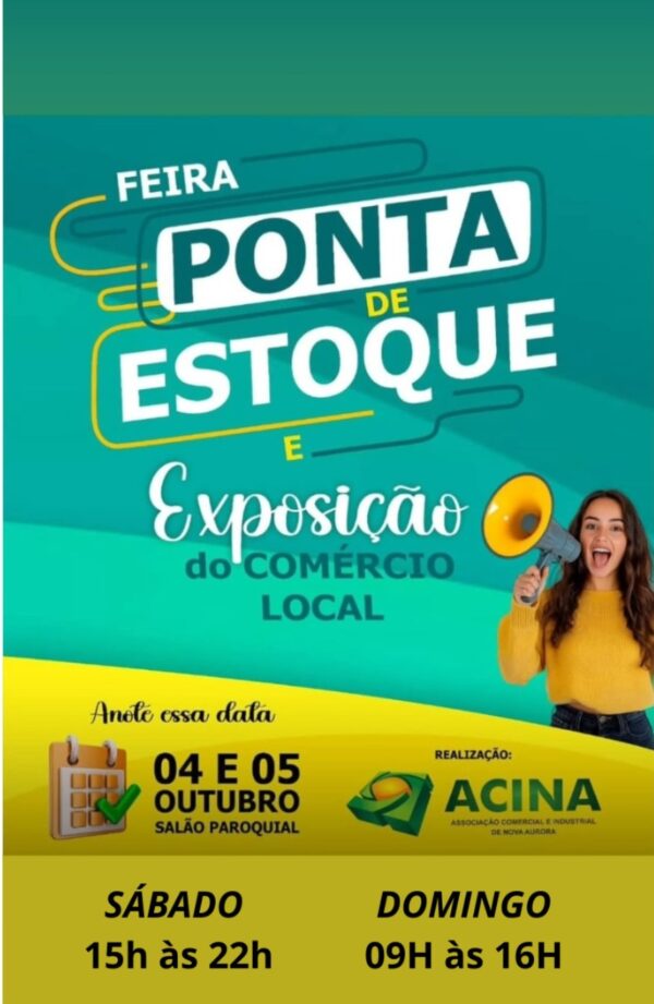 PorVinicius Cardoso2 de outubro de 2025A Associação Comercial e Industrial de Nova Aurora (ACINA) convida toda a comunidade para a maior Feira Ponta de Estoque e Exposição do...