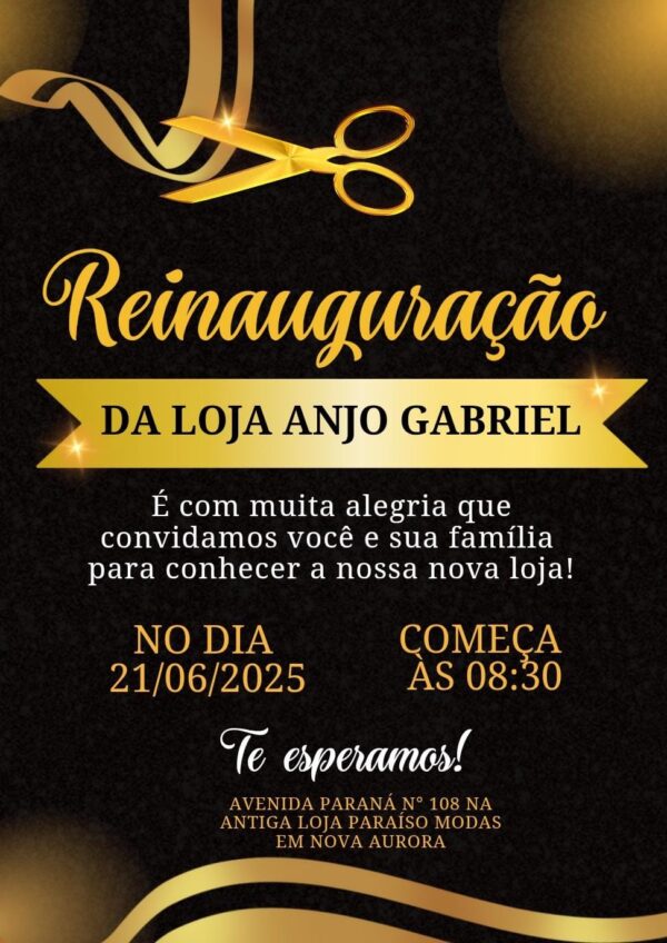 PorVinicius Cardoso25 de junho de 2025É com grande alegria que convidamos você e sua família para a reinauguração da **Loja Anjo Gabriel**, que acontecerá neste sábado, **dia 21...