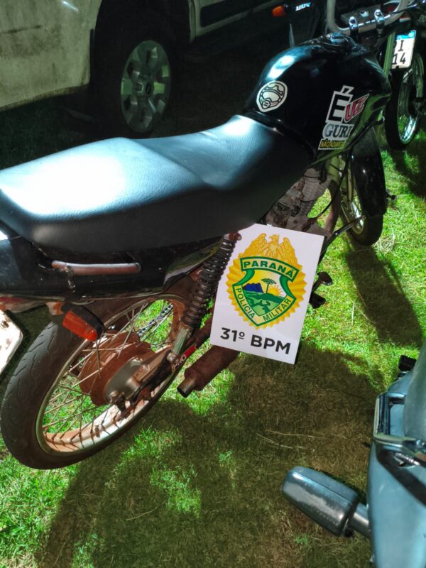 Durante o patrulhamento rotineiro realizado pela equipe do 31° BPM, foi avistada uma motocicleta Honda CG Start, de cor preta, com o farol...