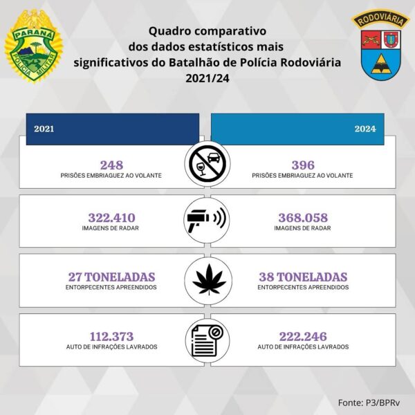 PorVinicius Cardoso8 de janeiro de 2025O Batalhão de Polícia Rodoviária (BPRv), responsável pelo policiamento nas rodovias estaduais do Paraná, apresentou uma melhora significativa em suas ações de operações...
