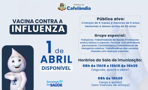 PorVinicius Cardoso8 de julho de 2025A Secretaria de Saúde de Cafelândia deu início, nesta terça-feira (1º), à campanha de vacinação contra a Influenza. A imunização tem como objetivo...