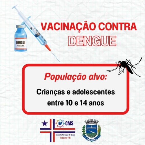 PorVinicius Cardoso17 de maio de 2024O município de Palotina, através da Secretaria de Saúde informa que já estão disponíveis as vacinas contra dengue. Nesta primeira etapa a população...