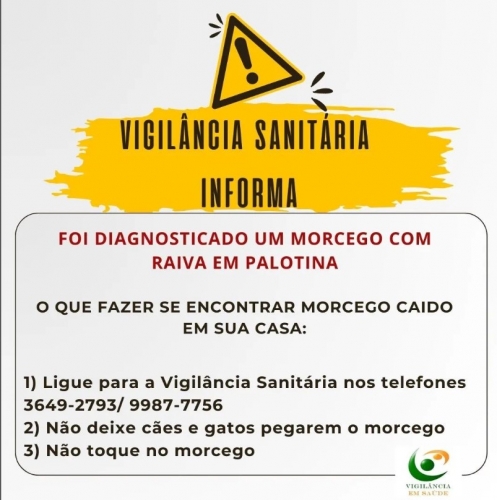 PorVinicius Cardoso10 de junho de 2024A Prefeitura Municipal de Palotina, através da Vigilância Sanitária, informa que foi diagnosticado um morcego com raiva. É fundamental redobrar os cuidados preventivos:...