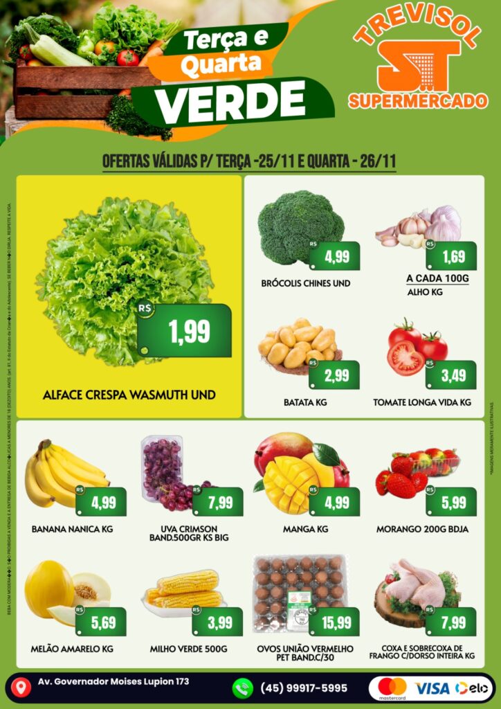 Terça e quarta verde no Trevisol Supermercado de Cafelândia, aproveite para conferir e comprar tudo para sua mesa.