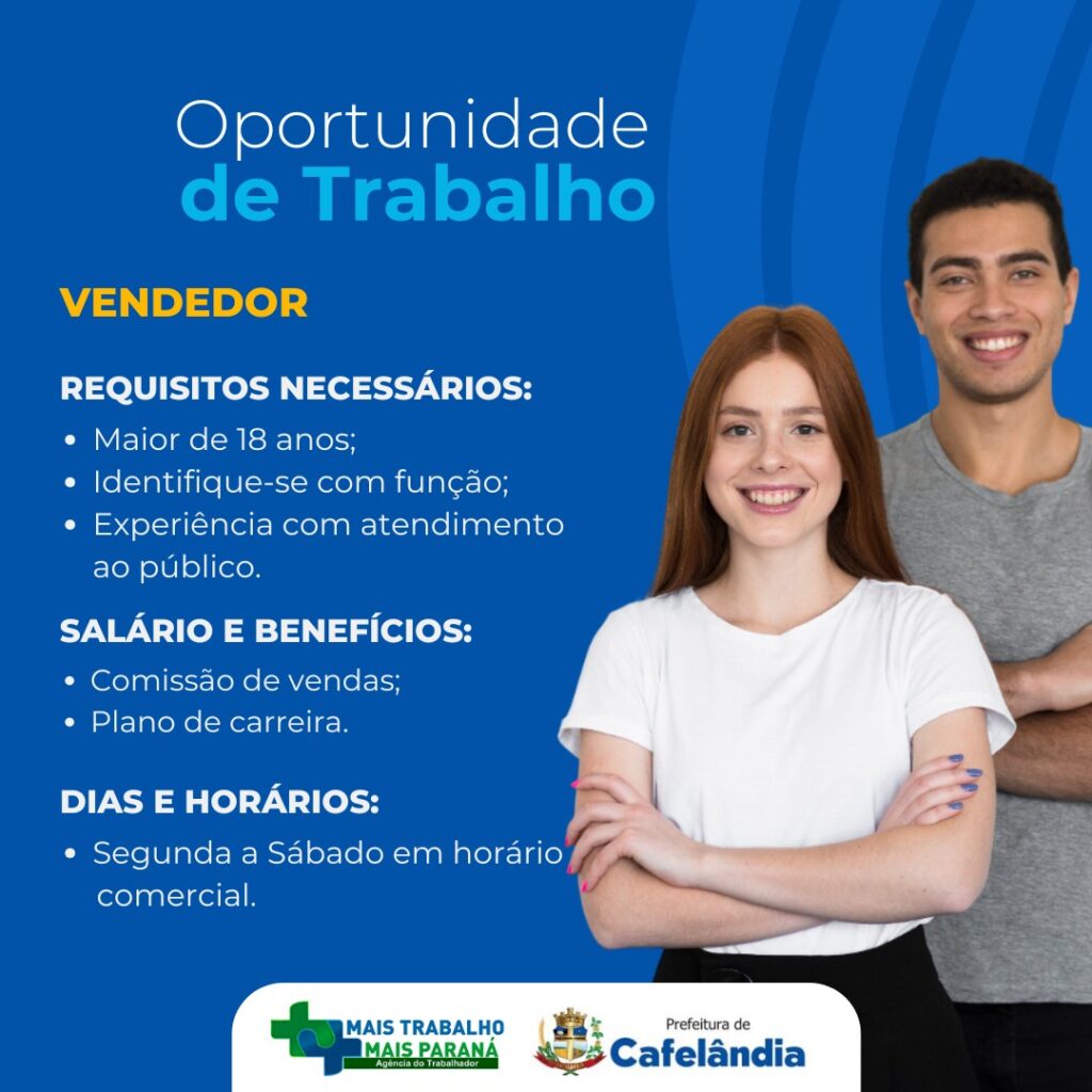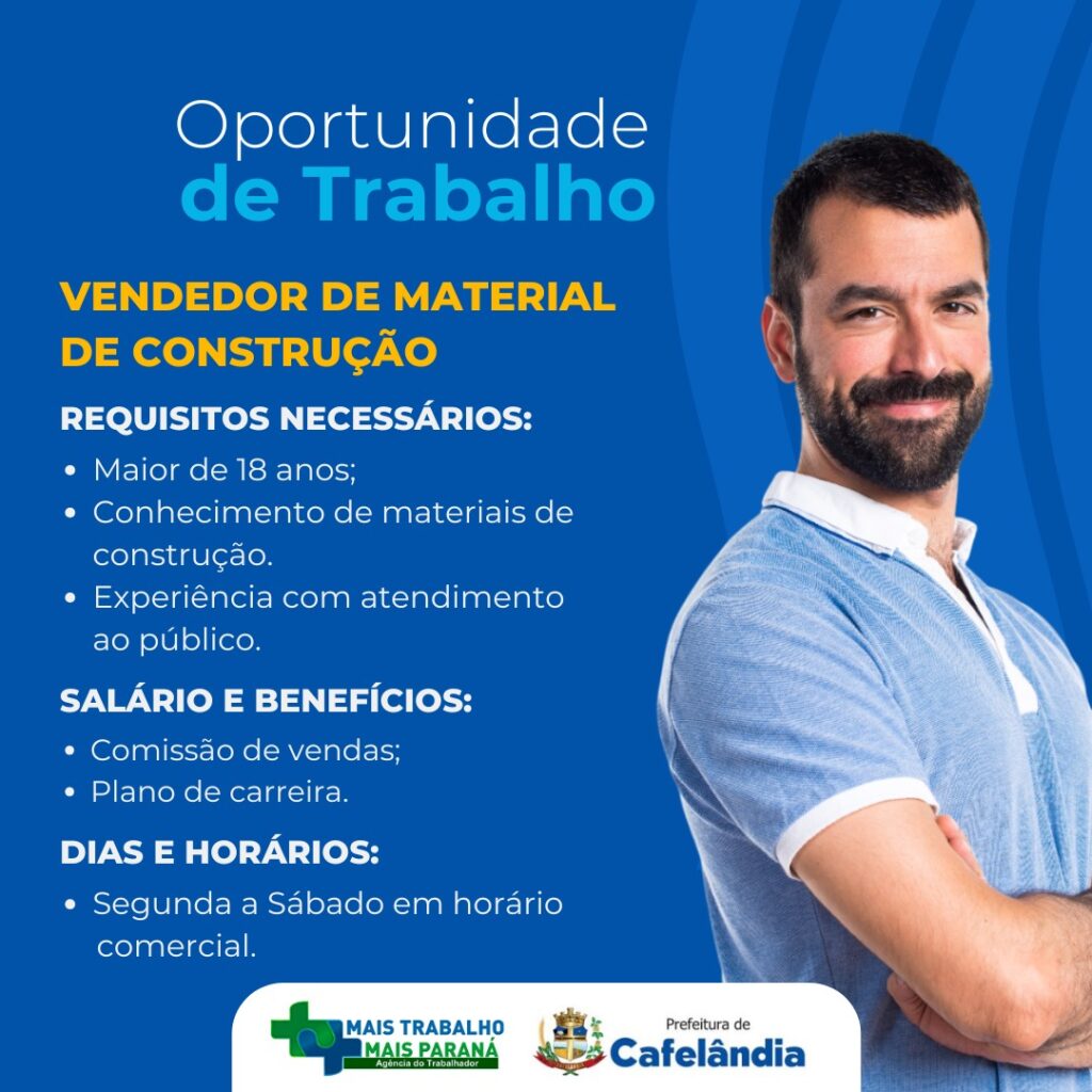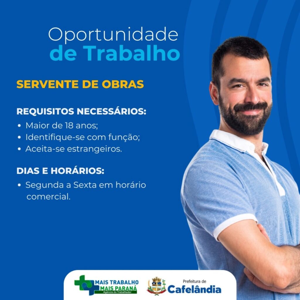 Confira as vagas de emprego na Agência do Trabalhador de Cafelândia