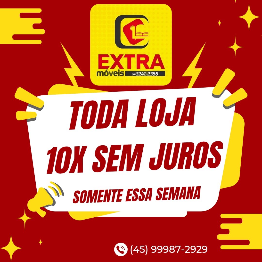 Toda a loja, todos os departamentos, com condições imperdíveis: tudo em 10 vezes, e o melhor, sem juros! Isso mesmo, você pode renovar sua casa com os melhores móveis e eletrodomésticos, tudo parcelado no carnezinho da Extra Móveis.