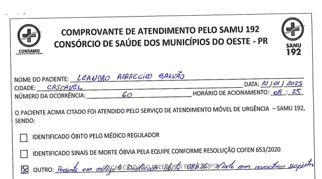 O laudo inicial do Samu apontou que a morte é suspeita.