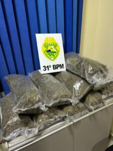 Na madrugada deste domingo dia 30 de junho por volta da 01:30 A equipe da Patrulha Rural da 3ª Cia/31º Batalhão, realizou a abordagem a um ônibus do transporte rodoviário que fazia a linha Foz do Iguaçu a Londrina, sendo encontrado no compartimento de bagagens uma mala de viajem que dentro estavam guardados 10 pacotes de substância análoga a maconha, que posteriormente totalizou 10Kg.