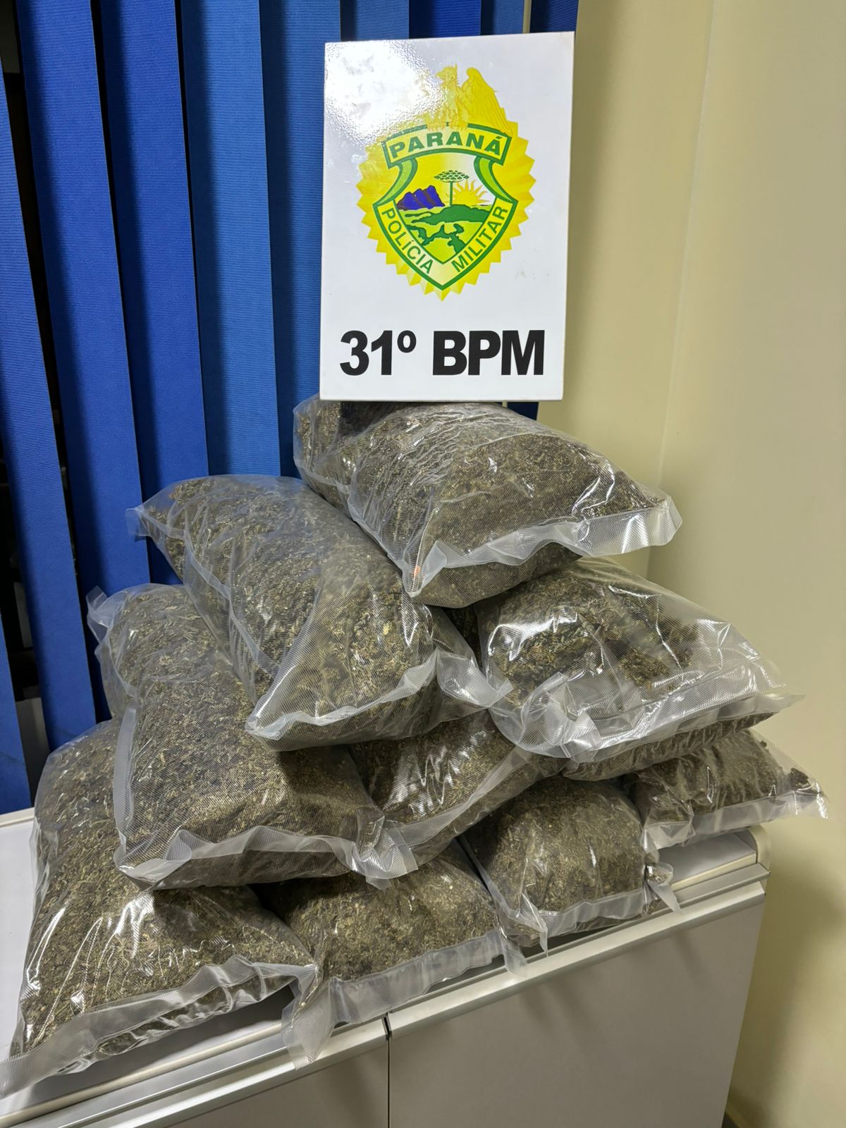 Na madrugada deste domingo dia 30 de junho por volta da 01:30 A equipe da Patrulha Rural da 3ª Cia/31º Batalhão, realizou a abordagem a um ônibus do transporte rodoviário que fazia a linha Foz do Iguaçu a Londrina, sendo encontrado no compartimento de bagagens uma mala de viajem que dentro estavam guardados 10 pacotes de substância análoga a maconha, que posteriormente totalizou 10Kg.