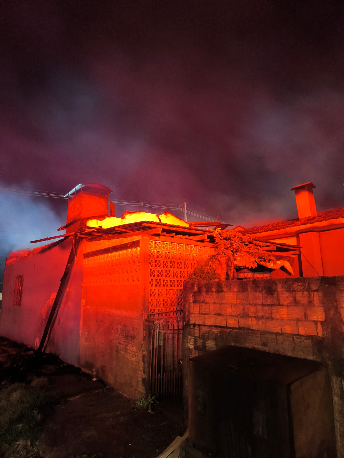 Ao chegar no local, as equipes de combate constataram que o incêndio já se encontrava em grandes proporções, com chamas intensas e grande volume de fumaça, atingindo boa parte da estrutura.
