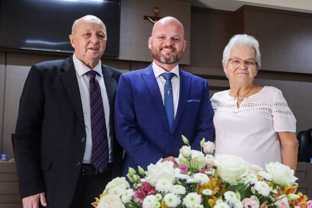 Ao final da cerimônia, a emoção tomou conta durante uma homenagem feita pelo senhor Armindo Romildo Motter e dona Inês Motter, os pais do prefeito Junior, que o abençoaram e lhe presentearam com uma lembrança.