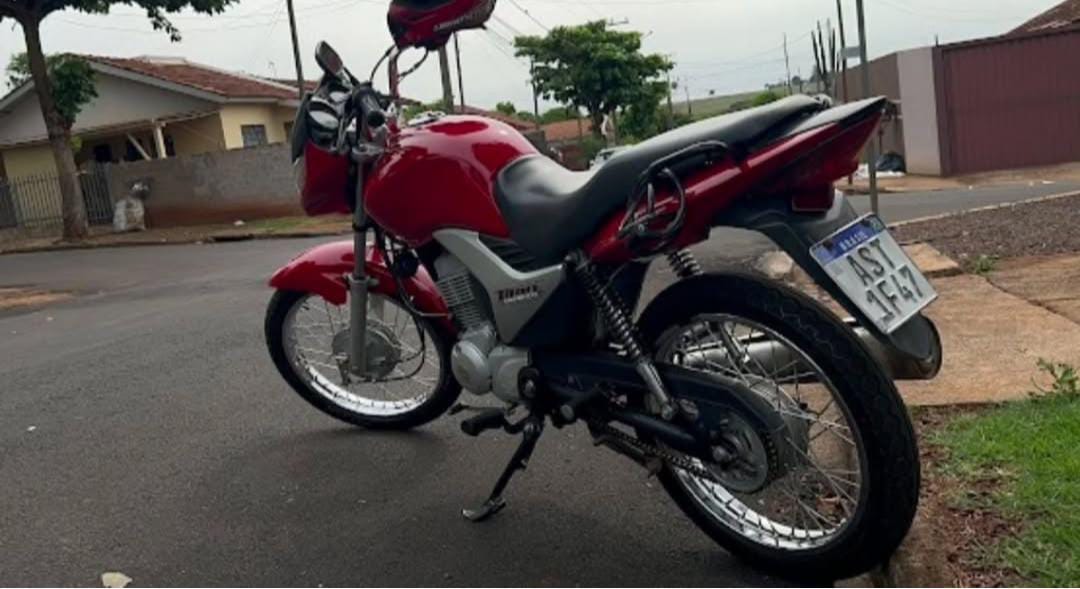 Uma moto titan 125 de cor vermelha placa AST1F47 foi furtada na noite desta segunda-feira, 17, em frente ao colégio na rua Dr. Plínio Costa, entre as 18:40 e 22:30 hs.