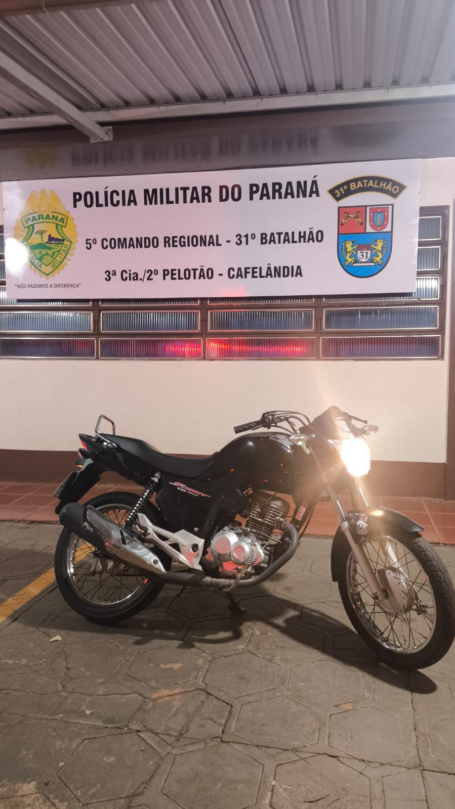 No último sábado, 21 de junho de 2025, a equipe da Polícia Militar de Cafelândia estava em operação de fiscalização de trânsito quando avistou uma motocicleta transitando sem os retrovisores. Diante da irregularidade, os agentes decidiram realizar a abordagem do veículo.