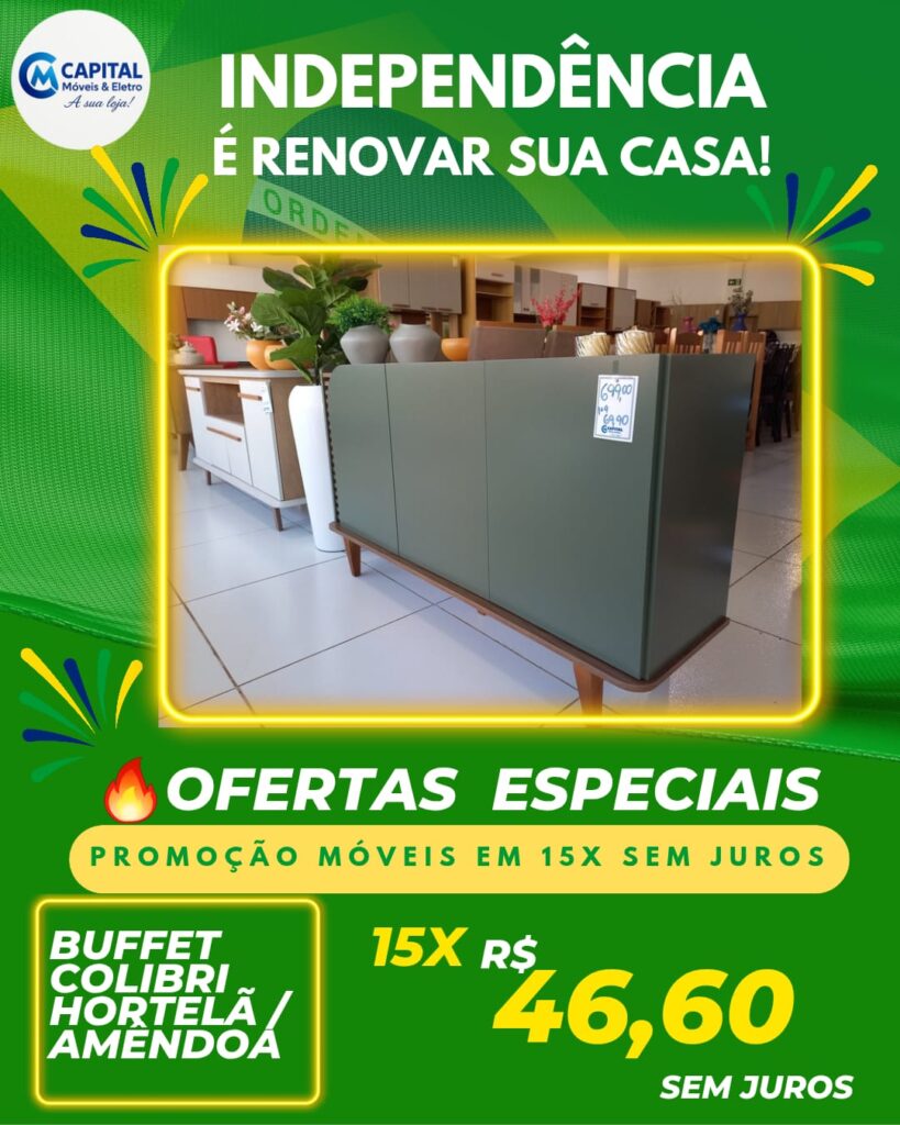 Que notícia incrível! Na Capital Móveis e Eletro, você pode renovar sua casa com toda a linha de móveis em até 15x sem juros no carnê da loja! Esta é a chance perfeita para transformar seu lar com praticidade e sem pesar no bolso.