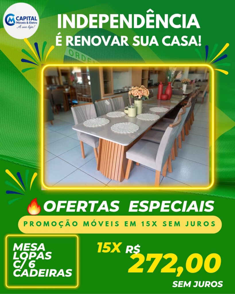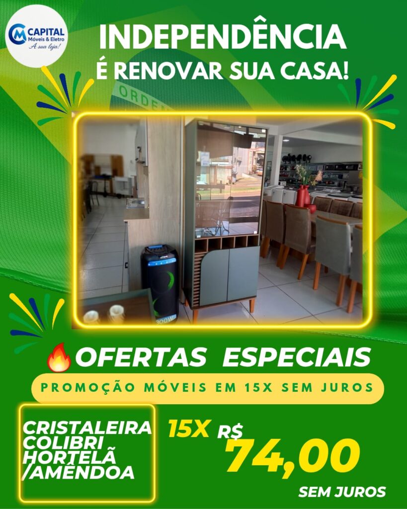 Que notícia incrível! Na Capital Móveis e Eletro, você pode renovar sua casa com toda a linha de móveis em até 15x sem juros no carnê da loja! Esta é a chance perfeita para transformar seu lar com praticidade e sem pesar no bolso.