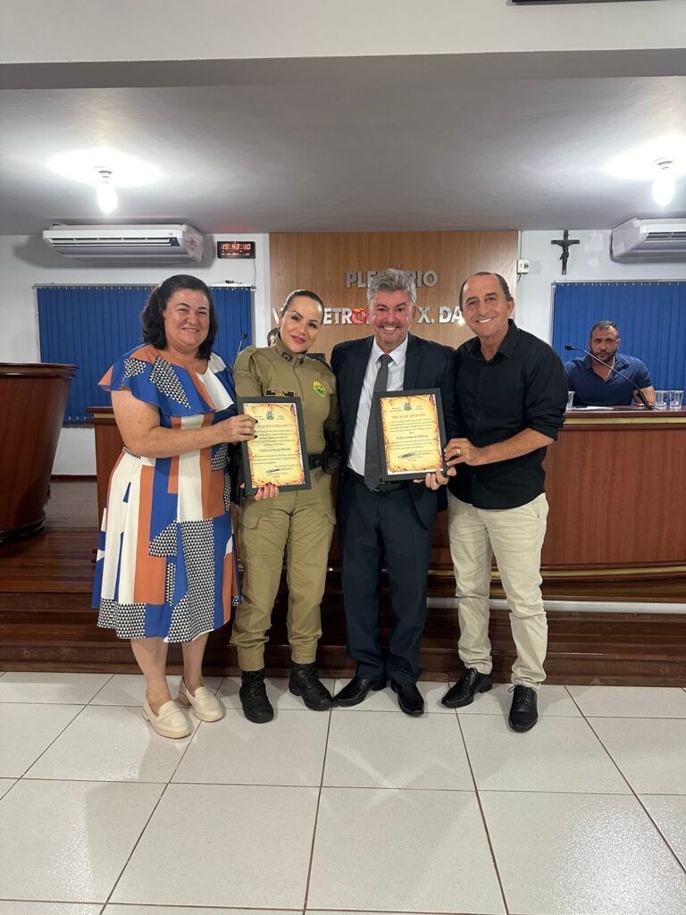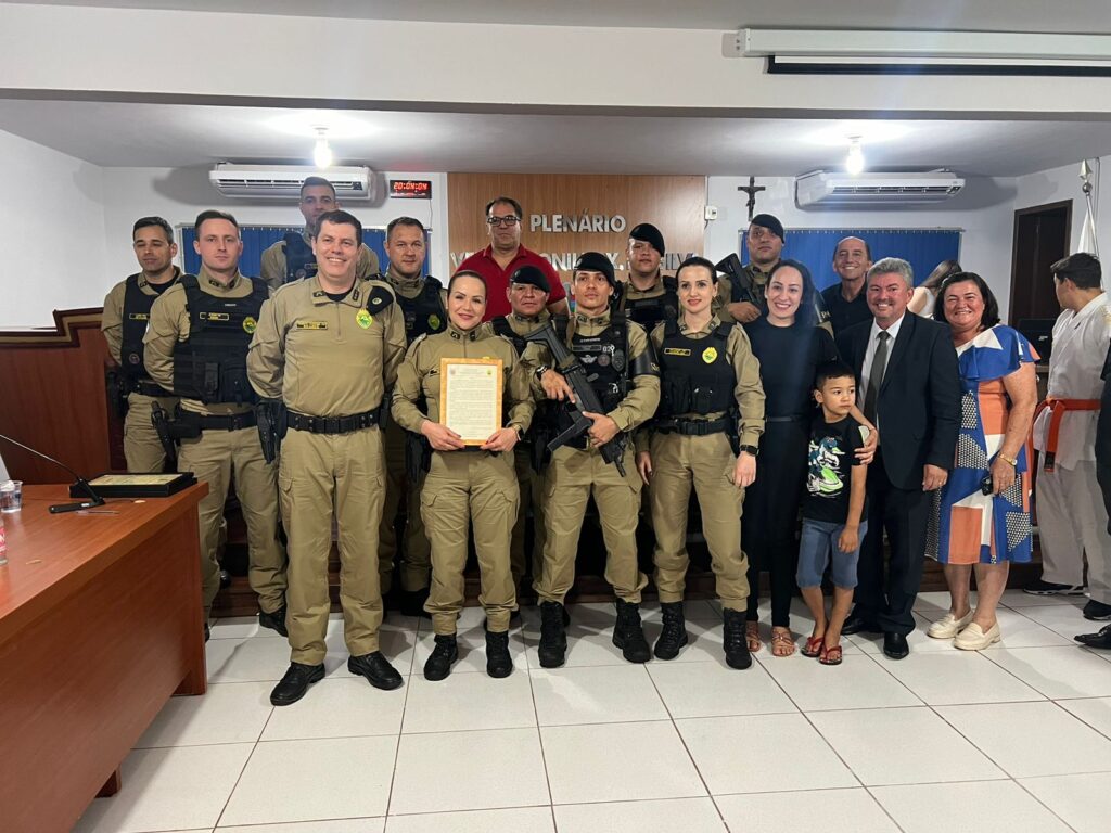Na última sexta-feira (08), em sessão solene, a Soldado Nubia recebeu da Câmara de Vereadores de Nova Aurora, uma Moção de Reconhecimento por atuações de destaque no último período, sendo uma homenagem pelos relevantes serviços prestados e compromisso demonstrado em prol da sociedade.