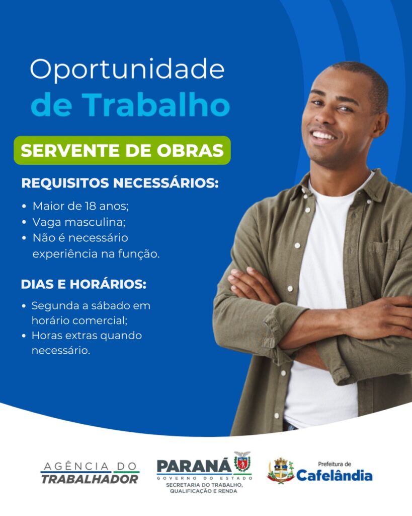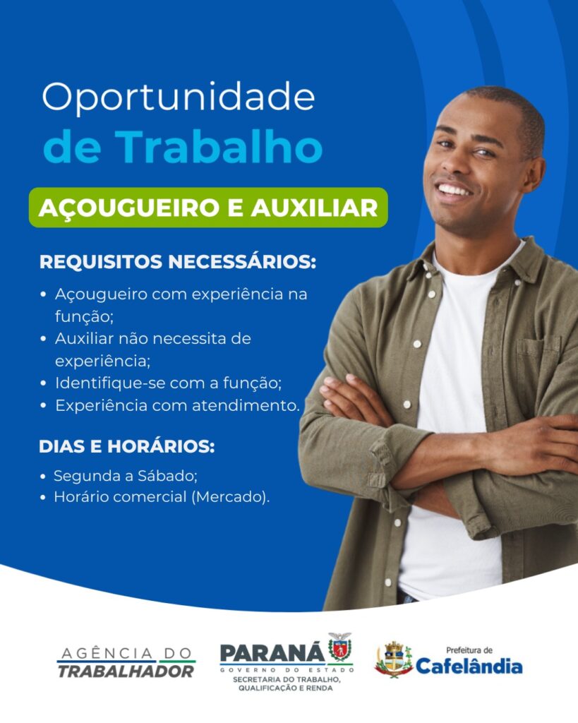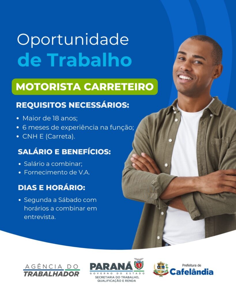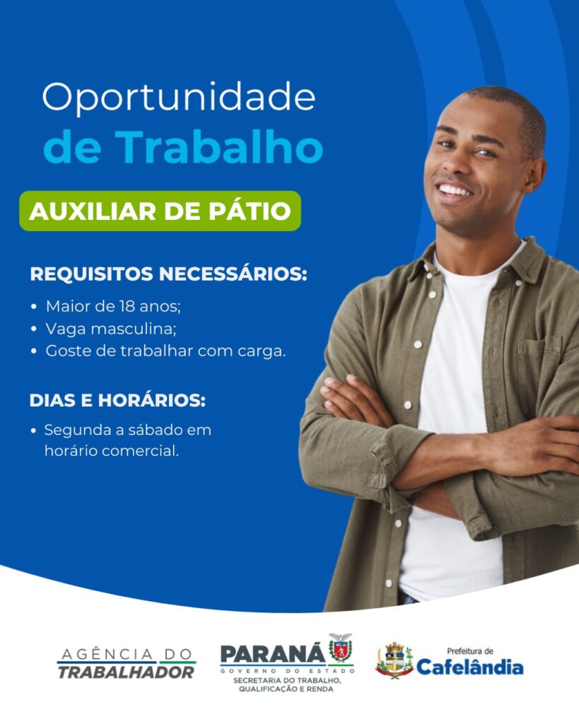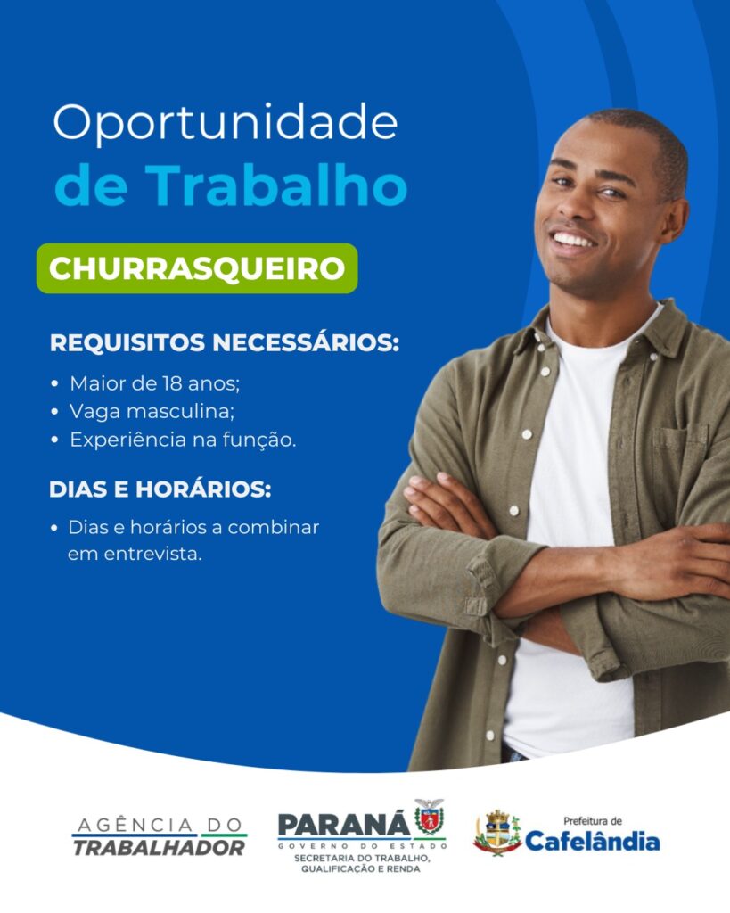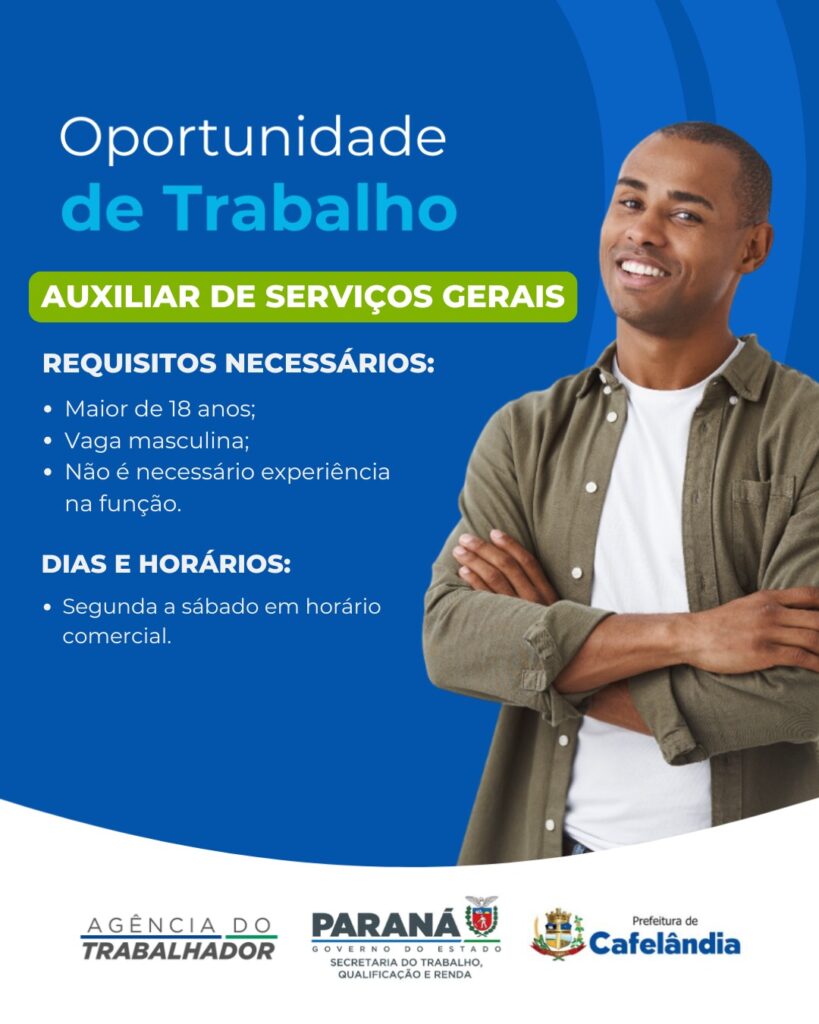 Na manhã desta terça-feira, 16 de dezembro de 2025, o gerente da Agência do Trabalhador de Cafelândia, Marcos Sampaio, entrou em contato com nossa reportagem para informar sobre diversas vagas de trabalho disponíveis no município.
