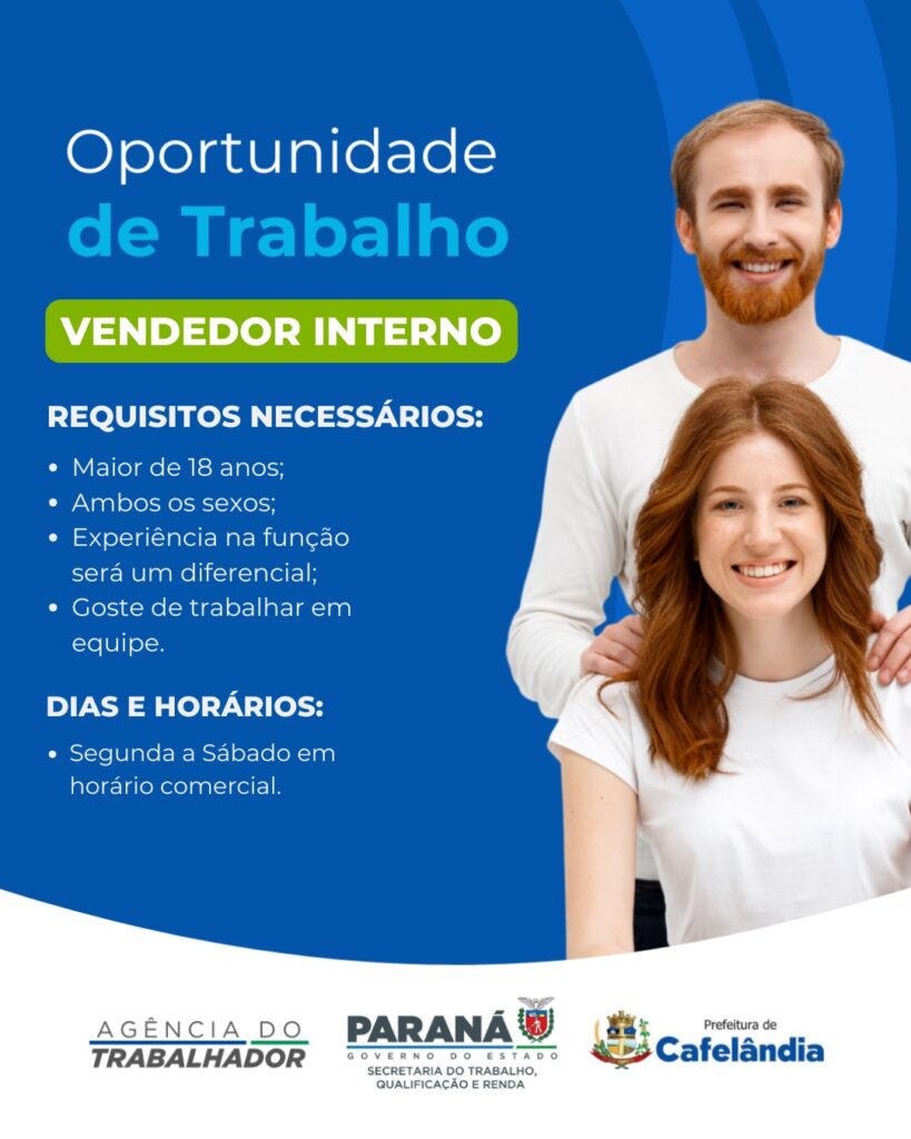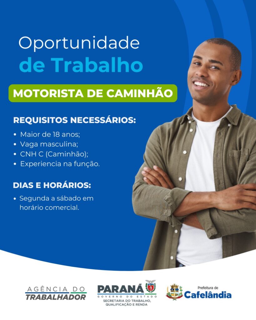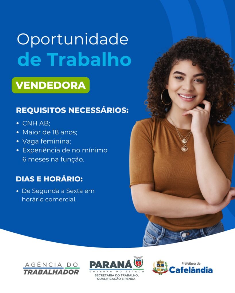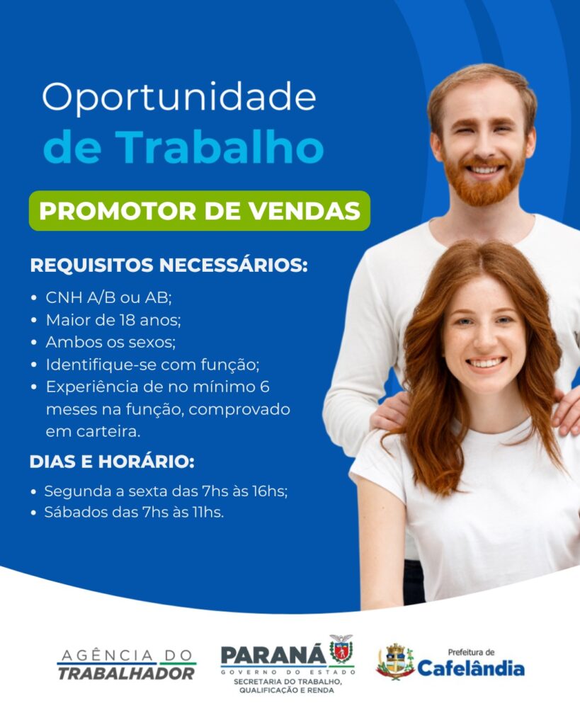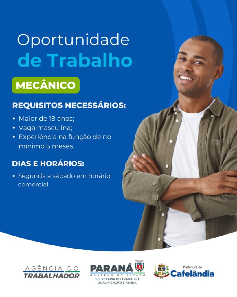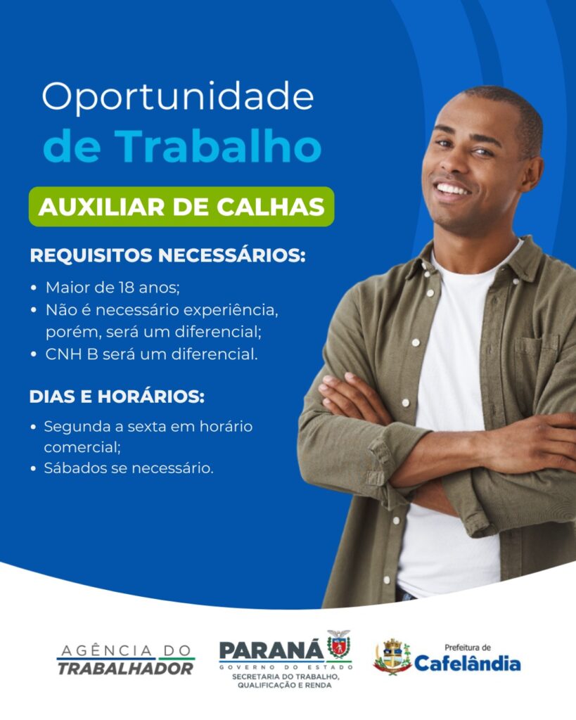 Na manhã desta terça-feira, 16 de dezembro de 2025, o gerente da Agência do Trabalhador de Cafelândia, Marcos Sampaio, entrou em contato com nossa reportagem para informar sobre diversas vagas de trabalho disponíveis no município.