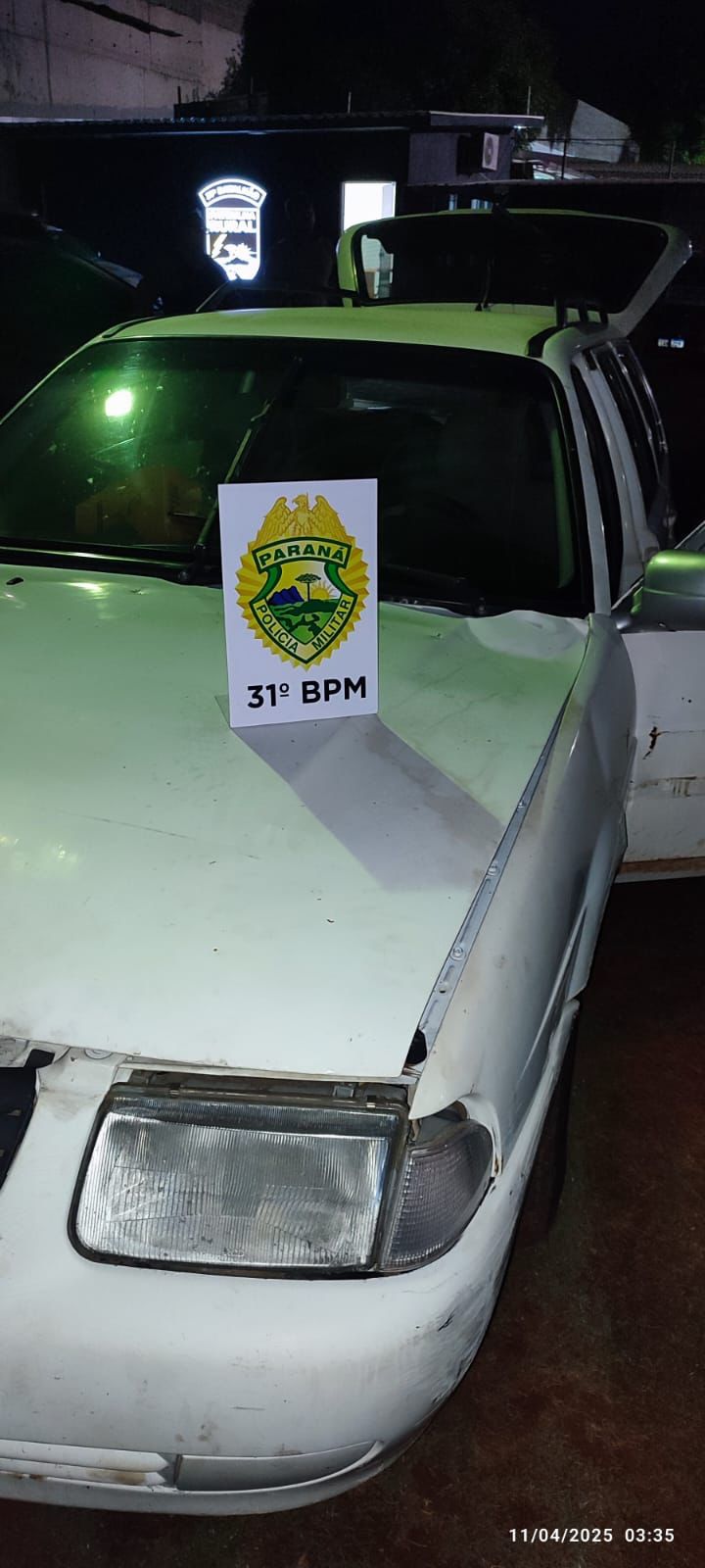 A equipe da Patrulha Rural foi acionada na madrugada desta sexta-feira (11) por um produtor rural cadastrado no programa, informando que um veículo transitava em alta velocidade dentro de sua propriedade que fica localizada no município de Corbélia.