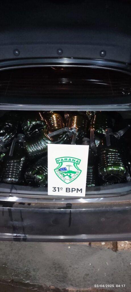 Ao ser abordado, o condutor informou que o veículo transportava galões de azeite de oliva oriundos do Paraguai e que não havia parado anteriormente por receio de ser detido. Foi realizada a verificação, confirmando a presença dos itens ilícitos no interior do veículo.