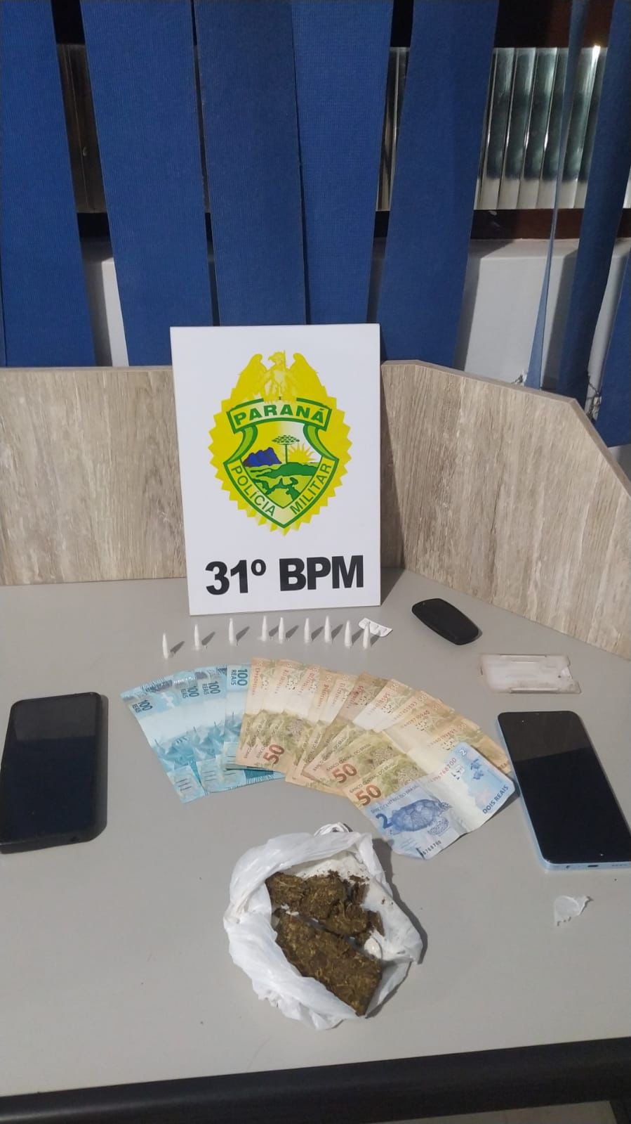 As substâncias pesadas totalizaram 106 gramas de maconha e 08 gramas de cocaína fracionadas em 09 pinos. Foi ainda localizado um aparelho celular de cor preta e marca poco, que foi recolhido pela equipe juntamente com os entorpecentes e dinheiro. O veículo ficou impossibilitado de rodar, ficando para ser recolhido posteriormente.