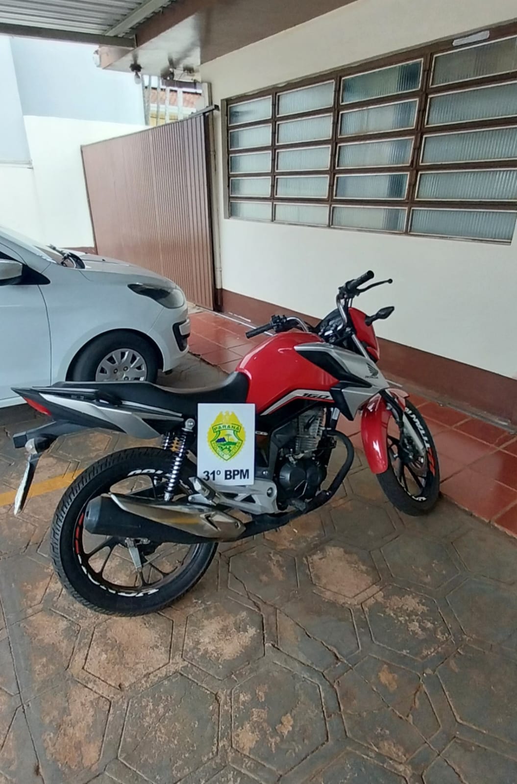 Chegando ao local indicado, a polícia encontrou a motocicleta, uma Honda/CG 160 Titan de cor vermelha, camuflada sob galhos, capim e madeira. O veículo estava sem chave e foi levado empurrado até o bairro Jardim Progresso II, onde foi possível fazer uma ligação direta para que ela fosse transportada até o Pelotão da PM.