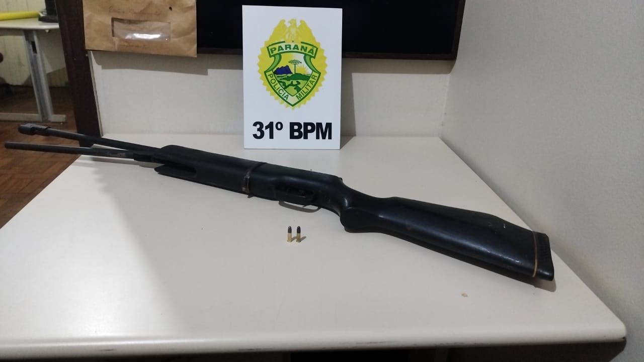 Após autorização da proprietária do imóvel os agentes realizaram buscas, encontrando uma carabina de pressão, onde supostamente está adaptada para realizar disparos com munição calibre 22. A arma foi apreendida e o boletim de ocorrência elaborado.