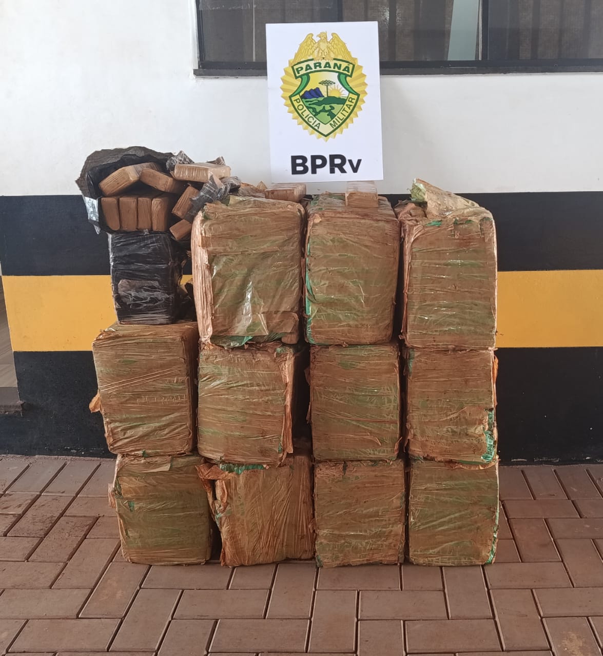 Durante vistoria no veículo, foram encontrados no interior e no porta-malas 12 fardos de substância análoga à maconha, que totalizaram 278,900 kg após pesagem.