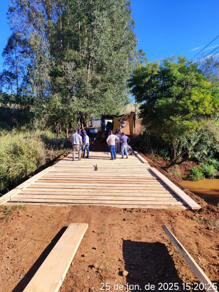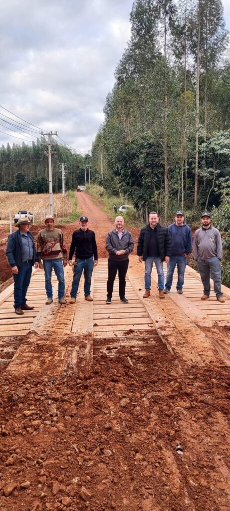 Após o término da obra, o prefeito Junior Motter, acompanhado do secretário de Agricultura, Viação e Obras, Valdecir Vizzoto, e do engenheiro agrônomo Rogério Schmidt, esteve no local para vistoriar e conferir de perto o resultado dos trabalhos “Essa ponte é fundamental para o escoamento da produção e o deslocamento das famílias que vivem nessa região.