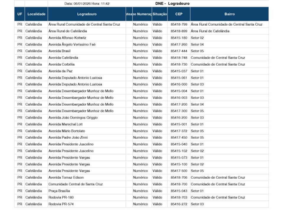 De acordo com os Correios, todos os moradores, empresas e instituições devem se adequar ao novo CEP até o dia 15 de abril. Por esse motivo, a Prefeitura de Cafelândia está intensificando a divulgação dessa nova organização, a fim de garantir que a população tenha acesso à informação correta dentro do prazo estabelecido.