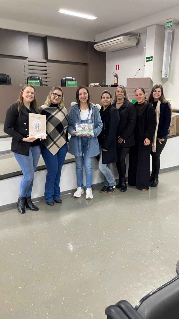 Na última sexta-feira, dia 27, aconteceu na Câmara de Vereadores o primeiro encontro do Projeto “Aconchego: Amamentação e Cuidado Materno Infantil”, uma iniciativa criada com o objetivo de promover a conscientização, orientação, apoio e incentivo à amamentação, além de fortalecer o vínculo e o cuidado entre mãe e bebê. O evento contou com a presença do prefeito Junior Motter, do vice-prefeito Odair Correa, da secretária de Saúde Josiane Jeske, vereadores e secretários municipais.