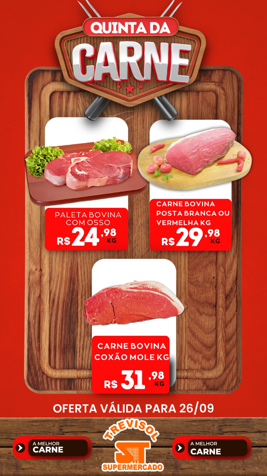 Estas ofertas são validas somente para esta quinta-feira dia 26 de setembro 2024, no Trevisol Supermercado.