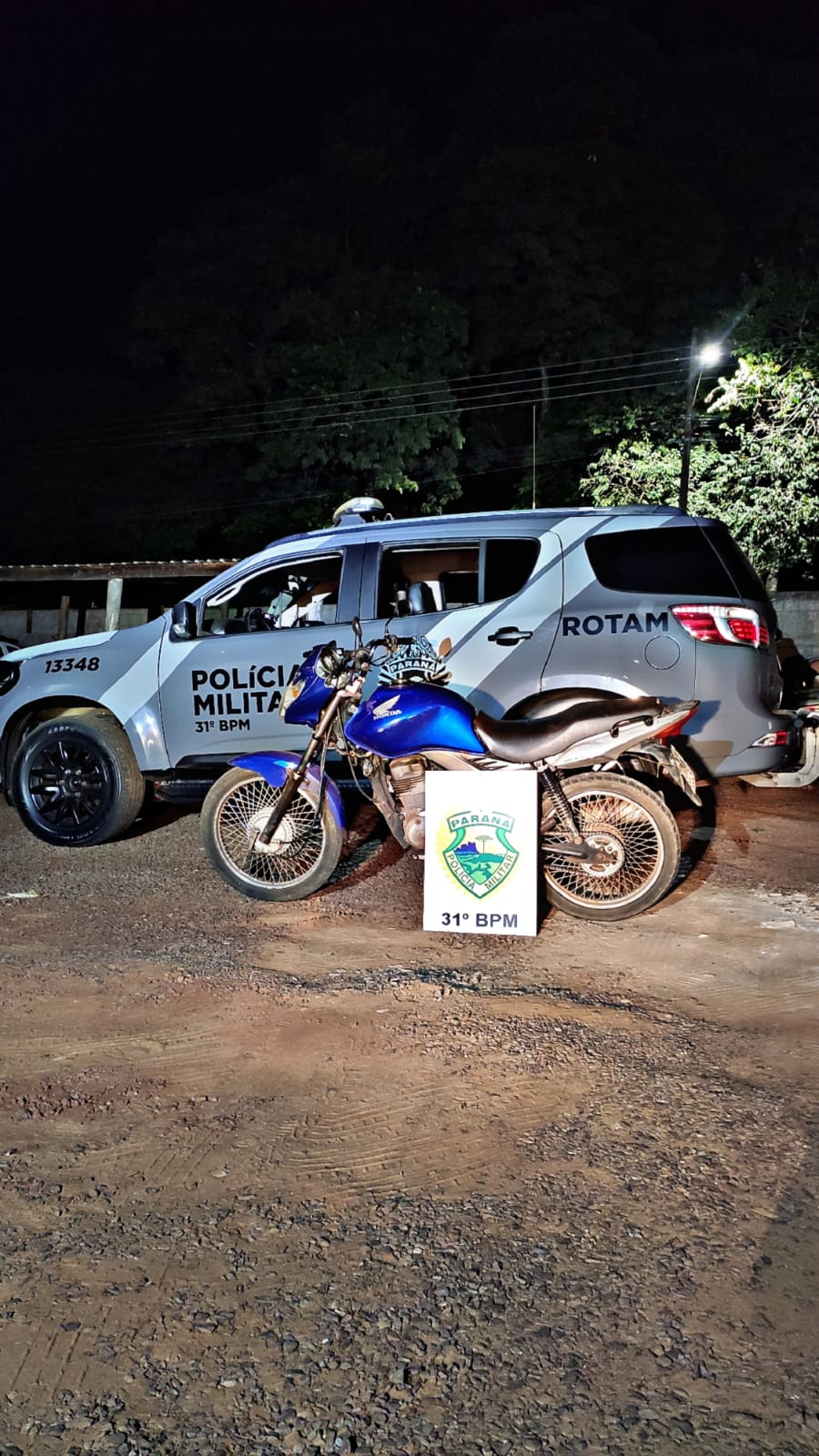 A polícia fez um breve acompanhamento e abordou a moto. Os ocupantes foram encaminhados para a Delegacia de Nova Aurora para os procedimentos cabíveis, juntamente com o veículo recuperado.