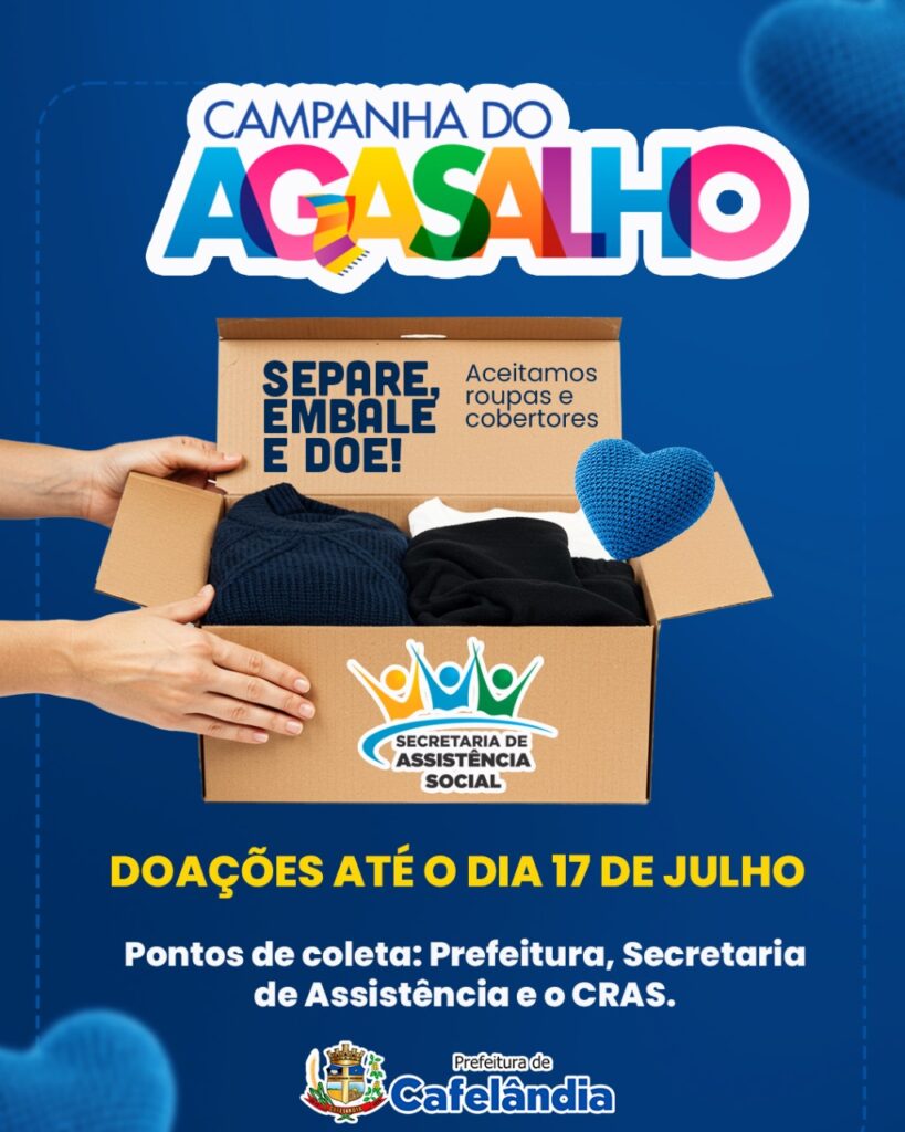 Com a chegada do inverno, a Secretaria de Assistência Social e a Prefeitura de Cafelândia iniciaram oficialmente a Campanha do Agasalho 2025, com o objetivo de arrecadar roupas de frio e cobertores para famílias em situação de vulnerabilidade do município.
