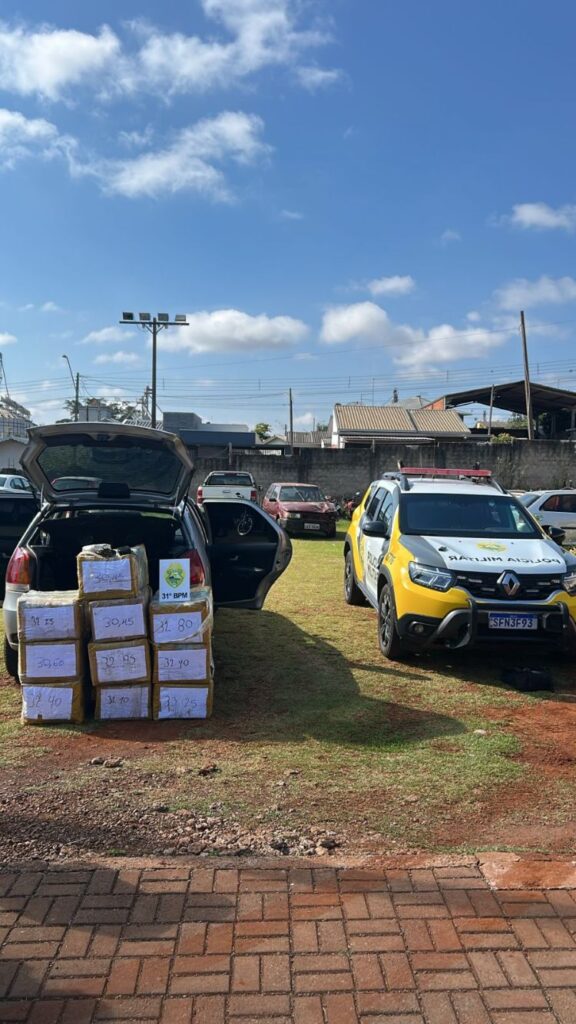 A apreensão totalizou impressionantes 324 kg de maconha e 1 kg de haxixe. O condutor do Palio foi encaminhado até a 3ª Companhia do 31° BPM para a confecção da documentação pertinente e, posteriormente, levado até a 10° Central de Flagrantes em Cascavel-PR para os procedimentos legais cabíveis.