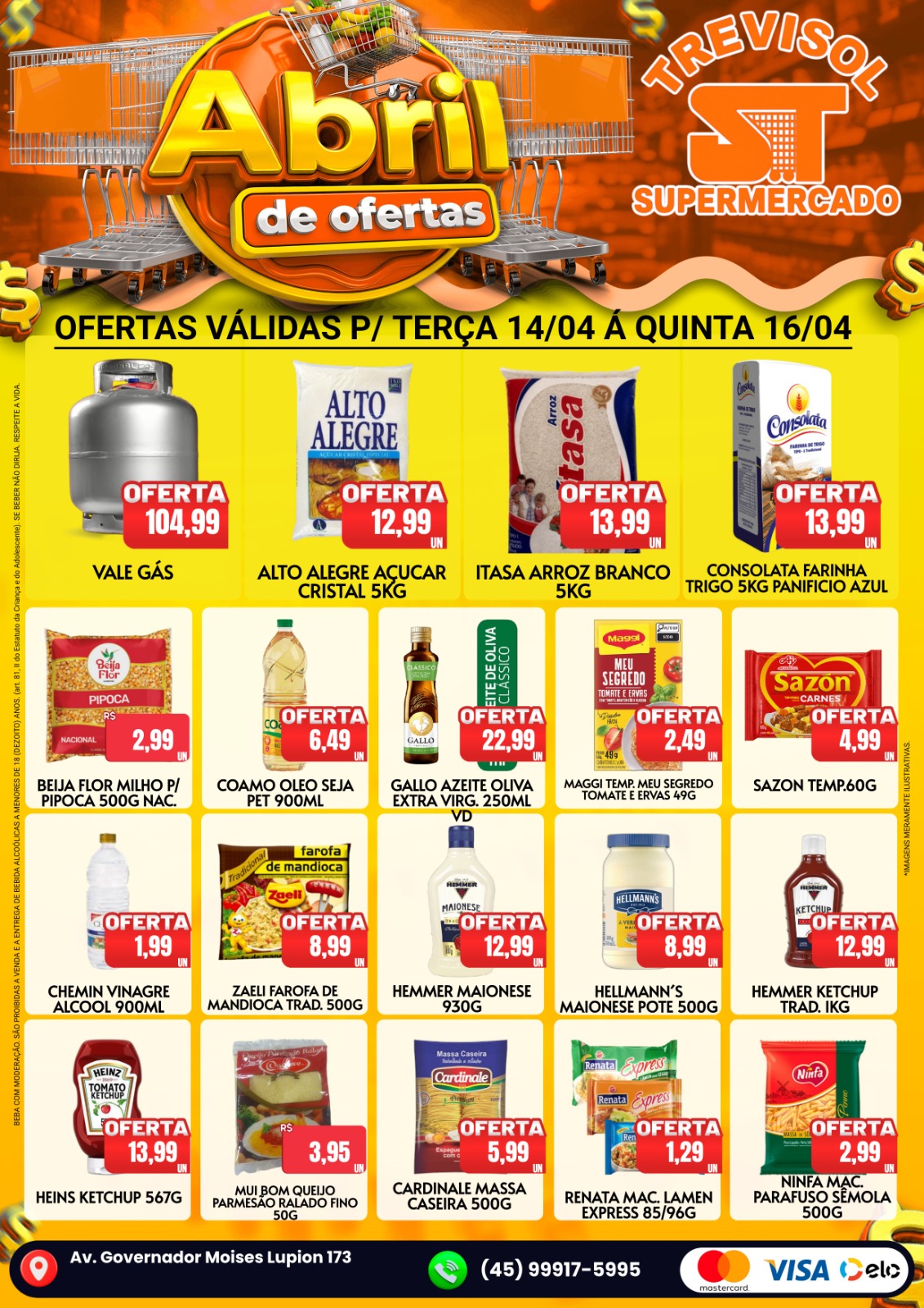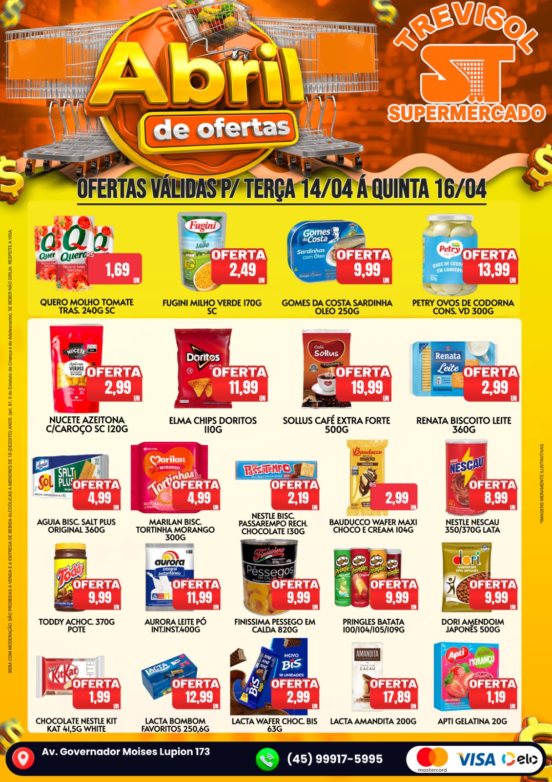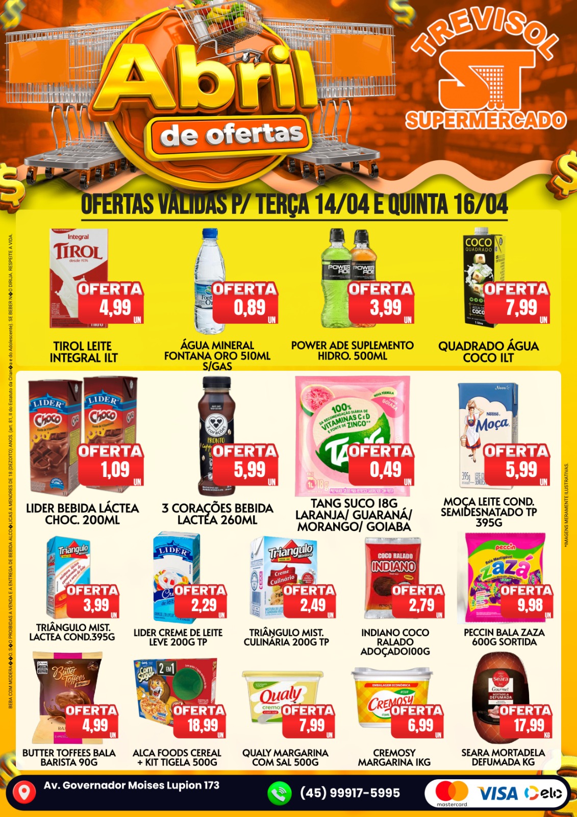 Para quem vai fazer as compras o Trevisol Supermercado tem ofertas em todos os setores. O Trevisol Supermercado esta localizado em Cafelândia no centro da cidade.